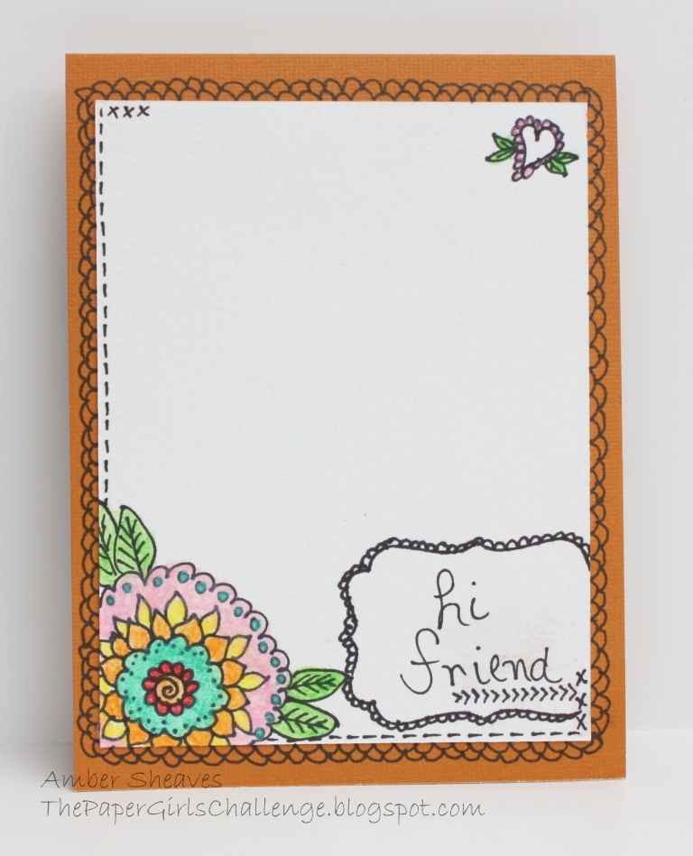 Amber's card is full of doodles and beautiful watercoloring.  I know I would be happy to receive this in the mail!