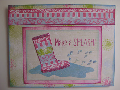 Sheryl  has a fun rainboot card to share with us with more glittery rain. This makes me wish I had a fun pair of rainboots to wear and splash around with the kids. Or by myself!