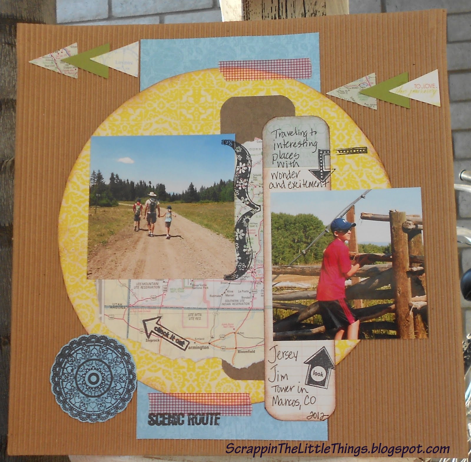 One reason I did this challenge is I have vacation photos from 2010 that still need to scrapped.  I am 5 layouts away from finishing our South Dakota album and am happy to have one more done.  Here is the layout I created: